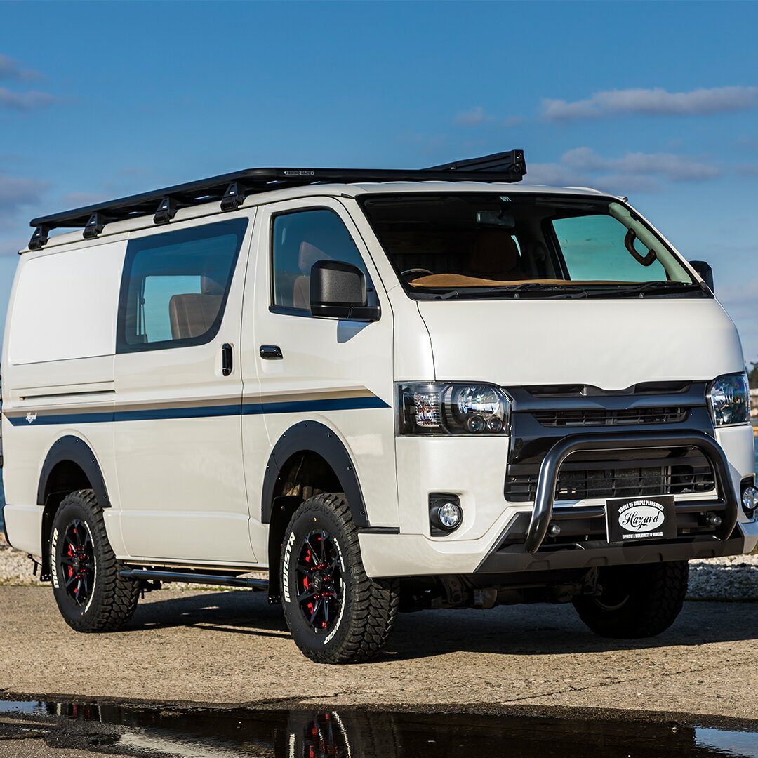 HAZARD HIACE ハイエース サイドステップバー 標準 エアロ カスタム スチール クロス系 ちょいアゲ 改造 艶消し 黒 粉体焼付塗装 マットブラック アウトドア クロカン