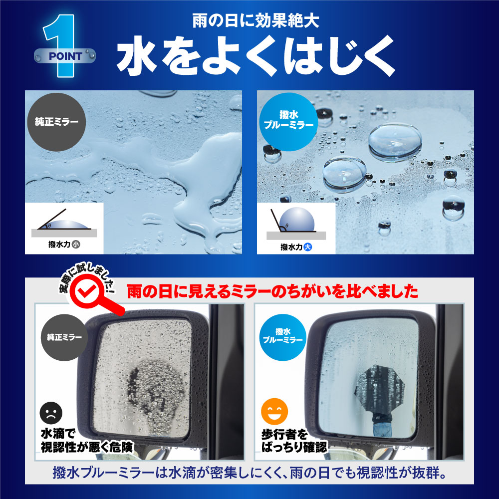 後期用 撥水ブルーミラーだから雨の日も安心!ライトの反射光も軽減!広角ミラーだから視界も広がる!